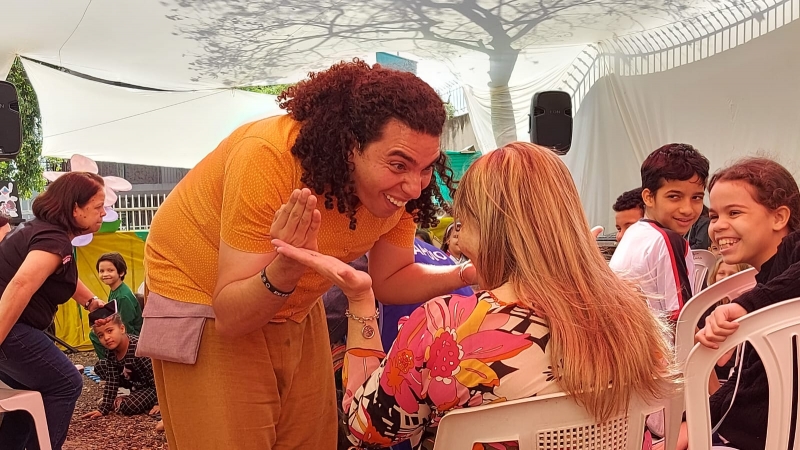O público participante pôde acompanhar tudo com muito animação e atenção às histórias contadas pelo ator-pesquisador Ademir Apparício. Foram momentos de interação com o público que recebeu Ademir, palhaço, produtor criativo, contador de histórias, arte-educador e mímico com muita receptividade.