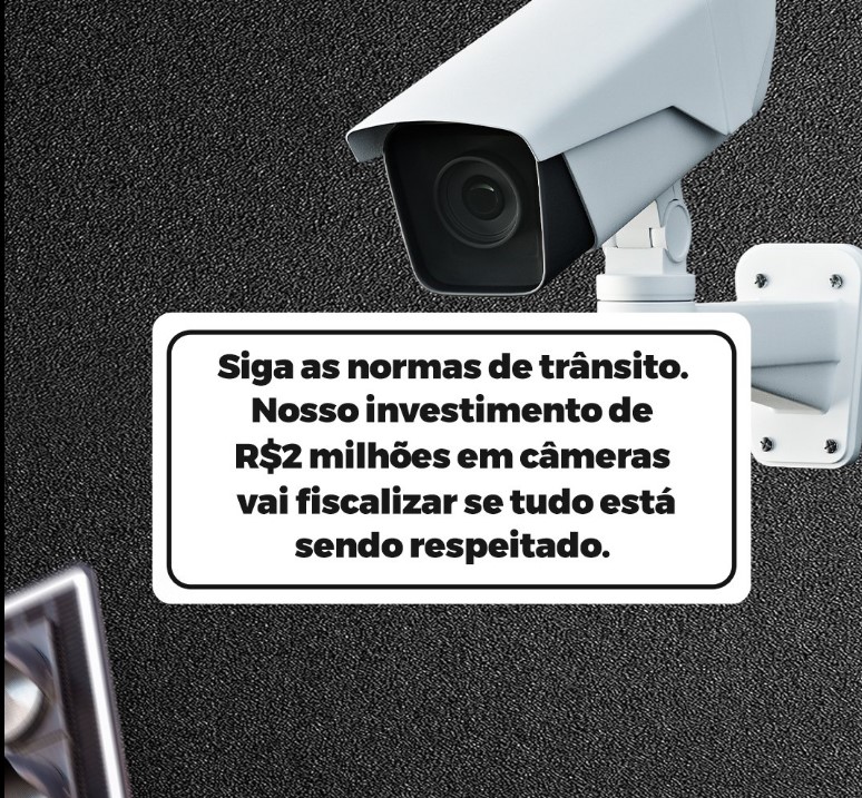 Siga as normas de trânsito. Nosso investimento de R$ 2 milhões em câmeras vai fiscalizar se tudo está sendo respeitado.