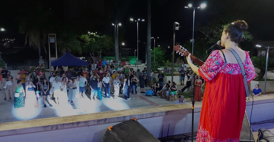 O Circuito Cultural Paulista encantou os dracenenses na noite dessa quarta-feira (20) com show da cantora Tiê na Praça da Igreja Matriz. A abertura contou com a participação da dracenense Maira Hench, que trouxe o grupo Calangos do Oeste para animar ainda mais a noite.