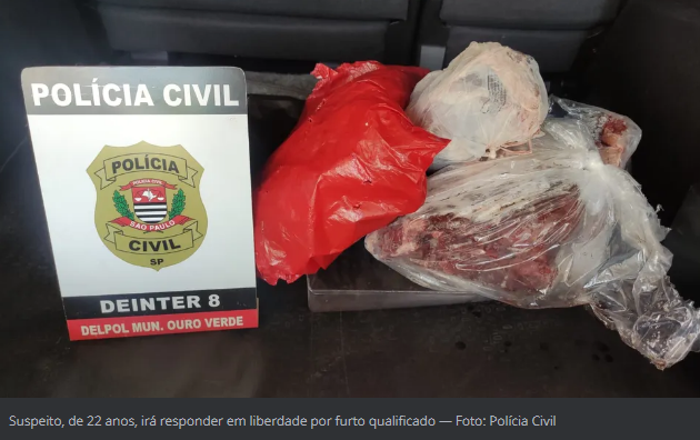 A Polícia Civil identificou na quinta-feira (7) um rapaz, de 22 anos, suspeito de ter furtado e abatido um animal bovino de uma propriedade rural em Ouro Verde (SP).