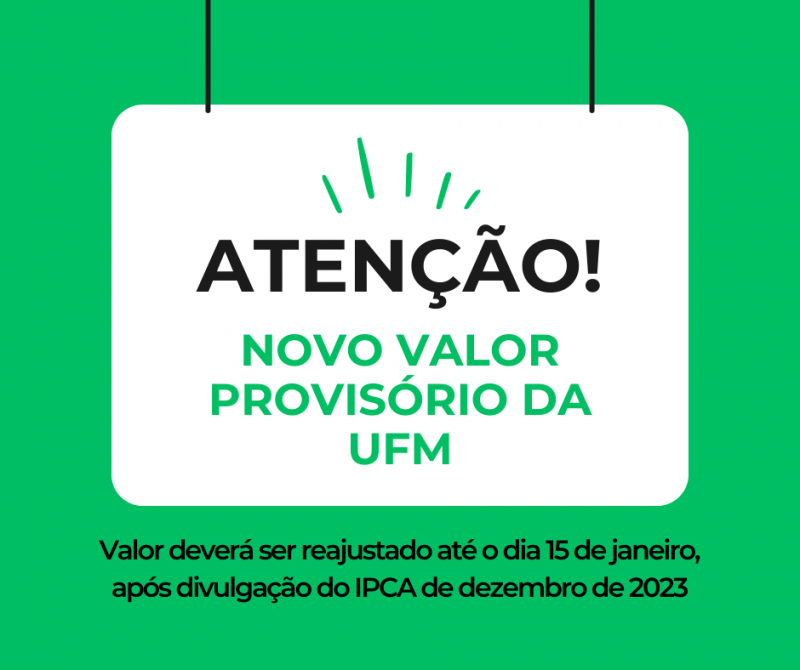 A Unidade Fiscal do Município (UFM) de Dracena para 2024 foi alterada provisoriamente para R$ 37,19, com base no Índice Nacional de Preços ao Consumidor Amplo (IPCA) dos últimos 11 meses, de janeiro a novembro de 2023. A UFM ainda deverá sofrer reajustes até o dia 15 deste mês, após divulgação do IPCA de dezembro de 2023, dessa vez definitivo.